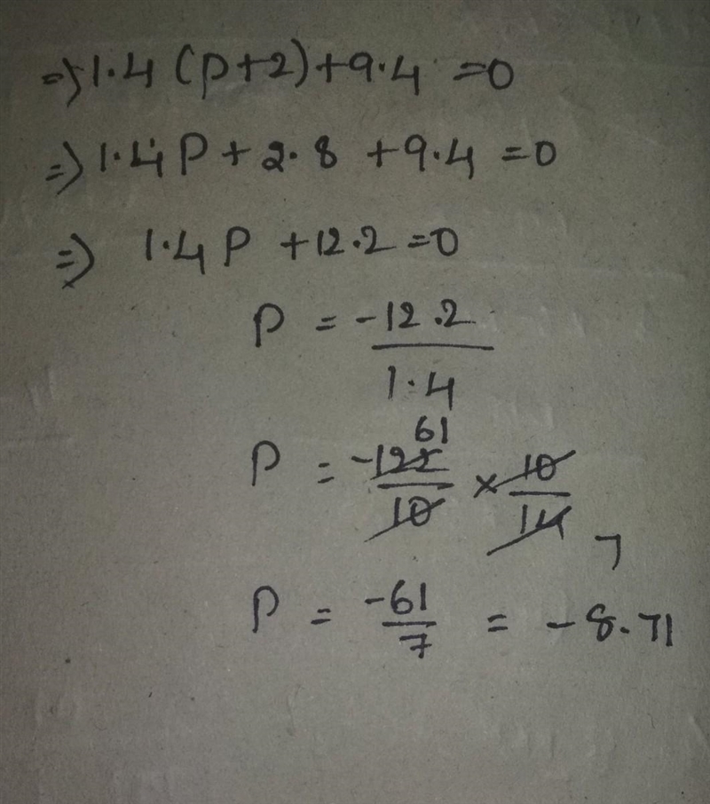 1.4(p+2)+9.4 simply the expression I over think it and get it and i get it wrong