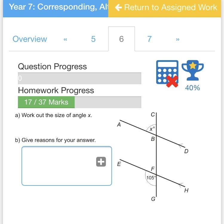 b) 105 is the same angle as angle B, I subtracted 180 by 105