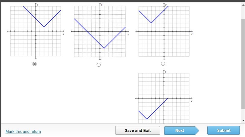 On a timer please help Which could be the graph of f(x) = |x - h| + k if h and k are both positive?