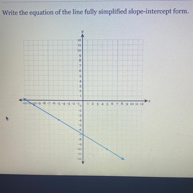 First find the coordinates of 2 points on the graph. I used (-5, -4) and (5, -10)