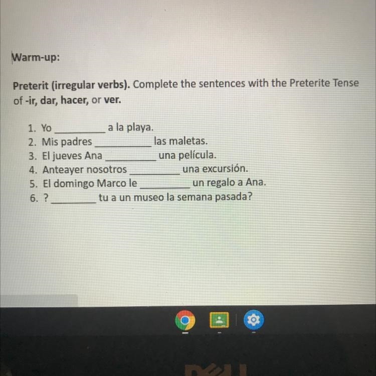 Conjuga los siguientes verbos en presente y preterito indefinido: SER, ESTAR, HACER.