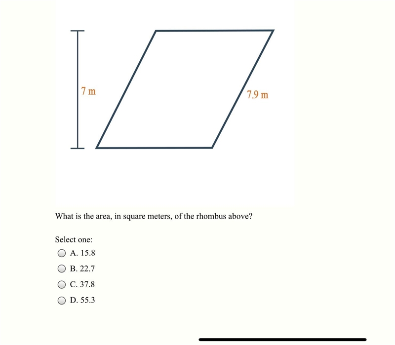 In order to find the answer you would need to multiply 7 square meters by 7.9 square meters which would get 55.3 square meters.