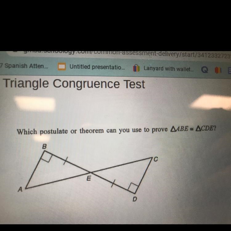 Use the given congruent sides and angles. Add the congruent vertical angles. Now you have ASA.