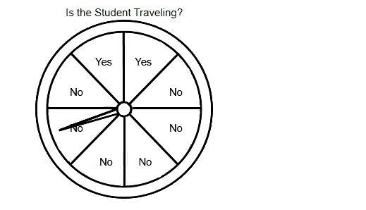 Jasmine created this spinner to predict whether a randomly selected student in her school will be traveling during the upcoming holiday break.