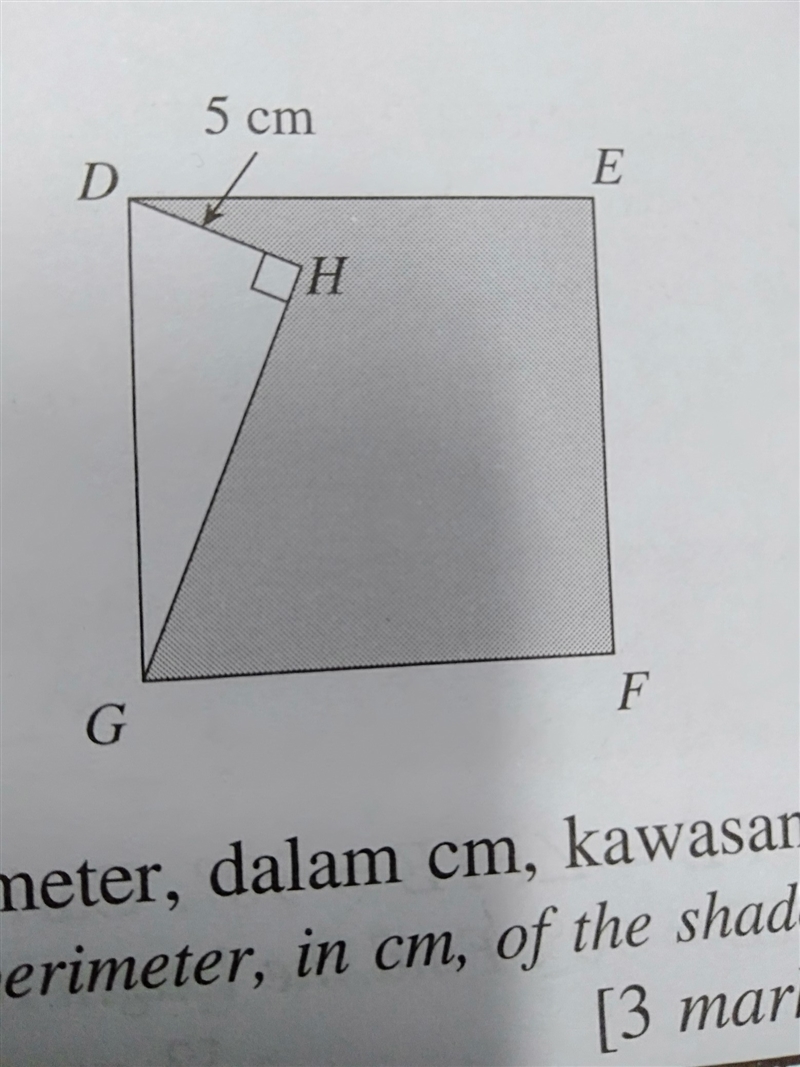 In the diagram, DEFG is a square with an area of 169.Find the perimeter, in cm, of the shaded region