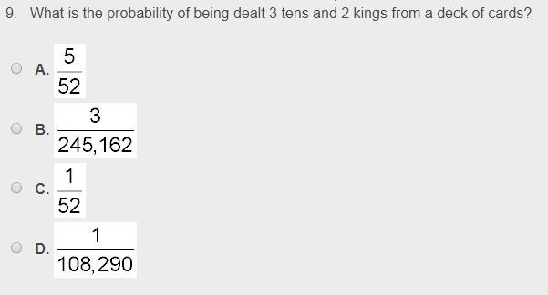 The probability = C(4,3)*C(4,2)/C(52,5) = 24/2,598,960 which simplifies to