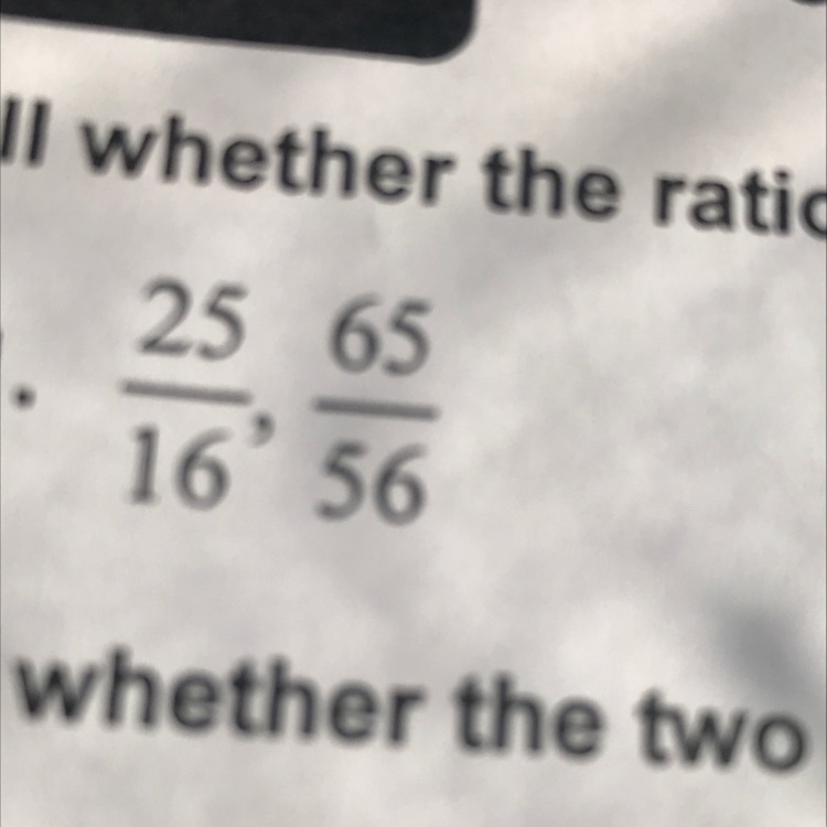 Tell whether the ratios form a proportion. 25/16 , 65/56-example-1