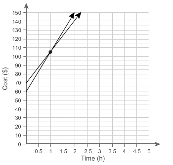 Candice needs a plumber and must decide between 2 companies. For a service visit, Company A charges $60 to send a plumber plus $45/h. Company B charges $70 to send a plumber plus $35/h. The graph that models this situation is shown here.