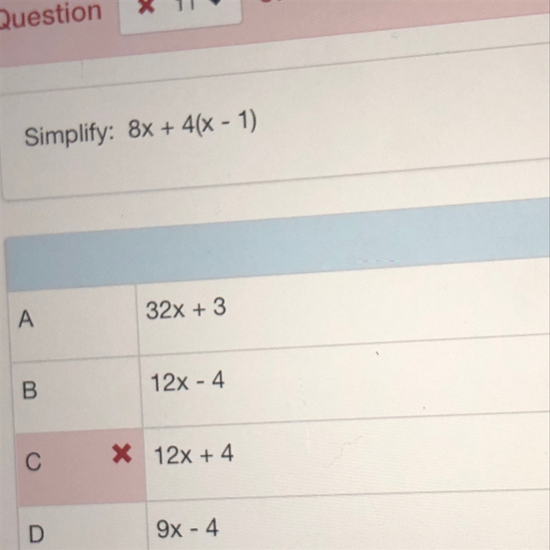 The problem with C is that the 4 didn't multiply a negative 1, it multiplied a positive 1.