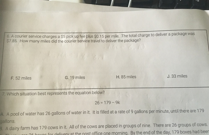 $2.85 = $0.15·m . . . . . . . . . subtract $5 (this gives the mileage charge)