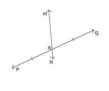 PQ is bisected at point R by MN. Which of the following I true about point R.