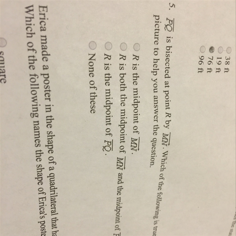 PQ is bisected at point R by MN. Which of the following I true about point R.-example-1