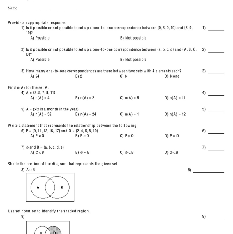 - To determine the number of one-to-one correspondence, use a factorial with the number of elements. 4 is the number and the factorial is 4! = 4*3*2*1 = 24.