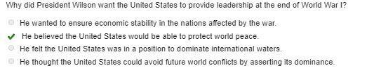 President Wilson wanted the United States to provide leadership at the end of World War I due to the fact that he believed that the United States will be able to perfectly protect world peace.