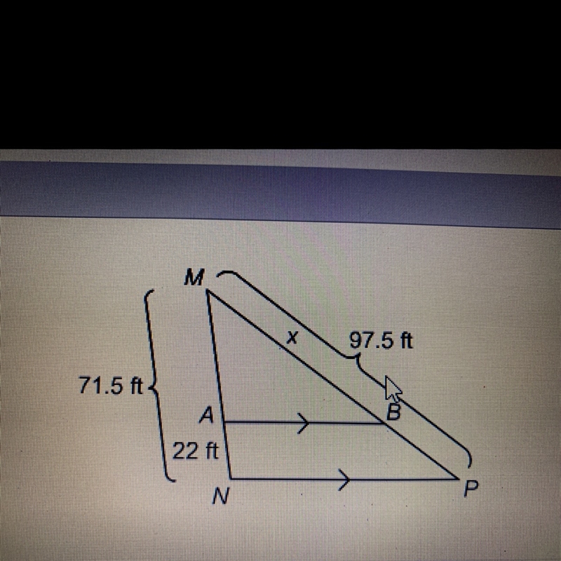 To find the value of x, create a proportion. A proportion is two equal ratios for similar figures. The two triangles are similar because they are the same shape but not the same size. Create ratios between corresponding sides of figures.
