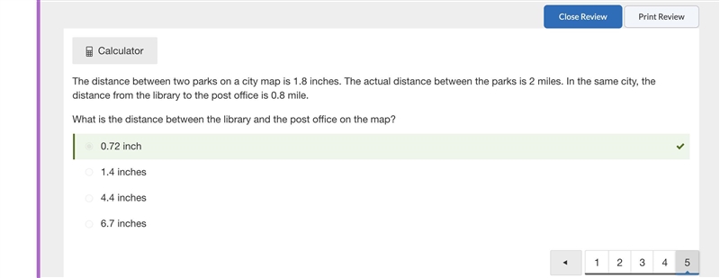 We have been given that the distance between two parks on a city map is 1.8 inches. The actual distance between the parks is 2 miles.