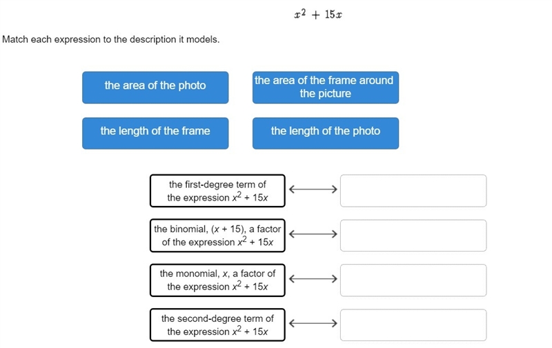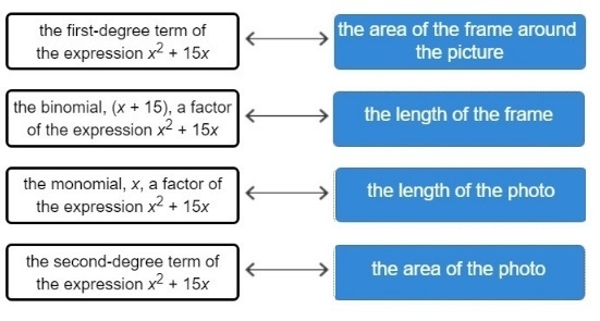 The length of the frame = x + 15 cm, ( the binomial, (x+15), a factor of expression