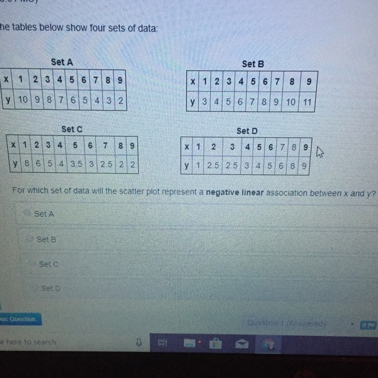 A Not set c set A because it’s going down and I see how you could get set c because it’s going down as well but you see it’s not linear