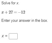 To find the answer, subtract 27 on both sides to cancel out the positive 27 and leave us with the equation