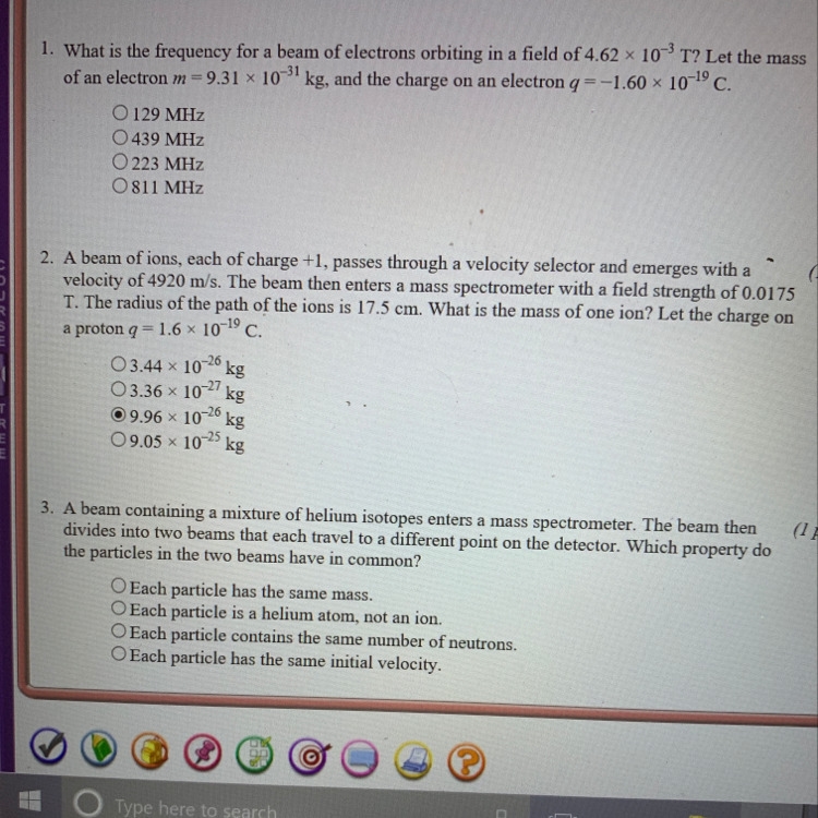 number 1. is 223MHz number 3. is Each particle is a helium atom not an ion