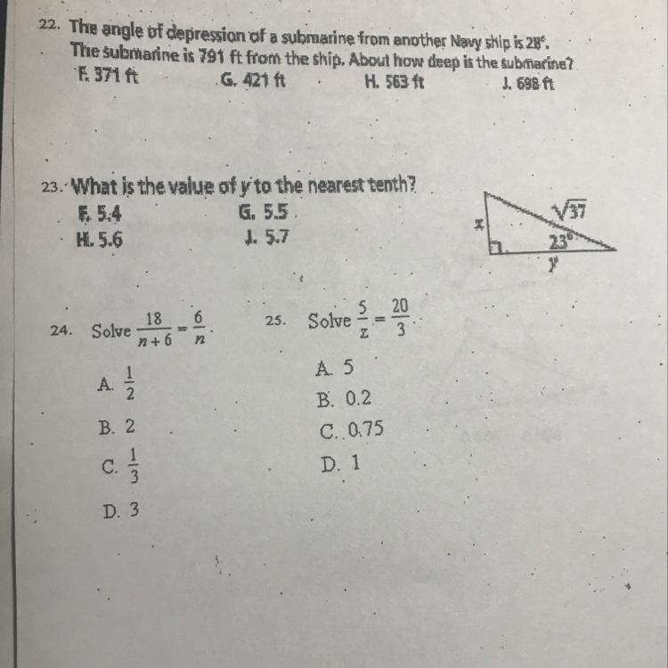first you have to cross multiply 5 multiply by 3 equals 15 than 20 multiply by z gives you 20z then 15=20z you want to get z by itself then you divide by 20 on both sides which is 15 divided by 20 then z is going to equal 0.75