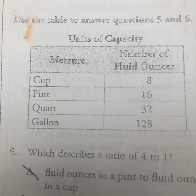 B.Fluid ounces in a pint to fluid ounces in a gallon