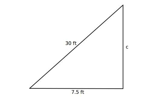 c=\sqrt{a^(2)-b^(2)}=\sqrt{(30ft)^(2)-(7.5ft)^(2)}=29ft