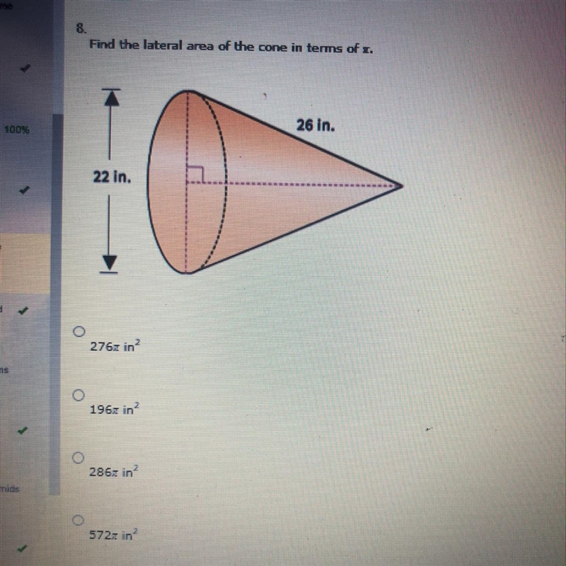 Didn’t he lateral area of the cone in terms of pi.-example-1