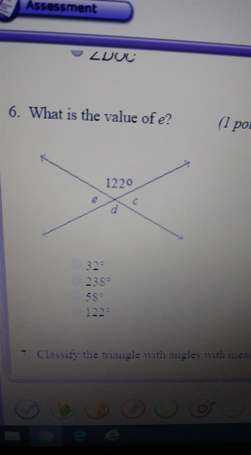 Help asap What is the value of e A. 32 B.238 C.58 D.122