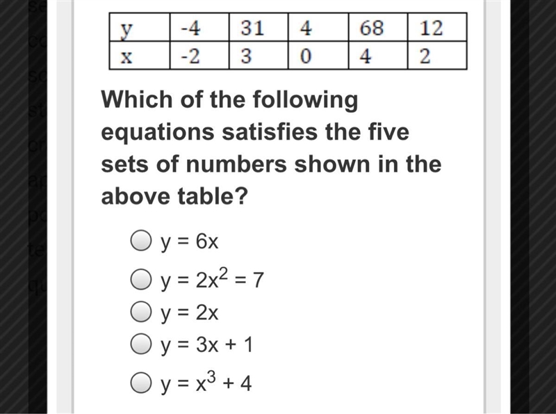 you can do trial by error. use the X values in each equation to see if it gives you the Y value in the chart.