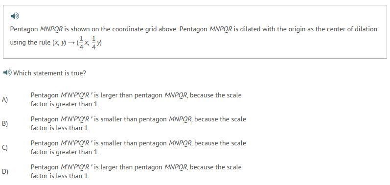 Pentagon M'N'P'O'R is larger than pentagon MNPOR because the scale factor is greater than one.