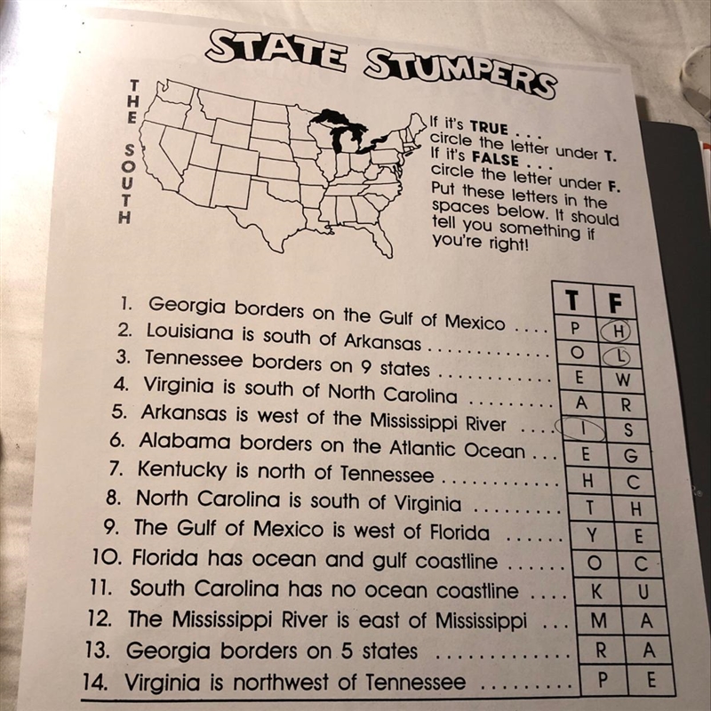 Help asap social studies about the south state stumpers