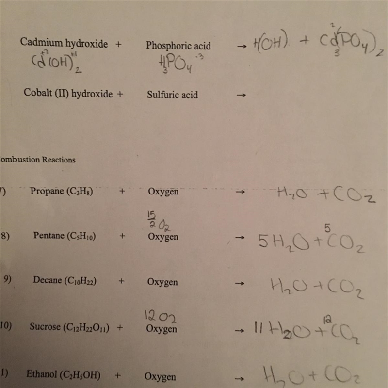 Can someone complete the chemical reactions, or write which one do not occur, and provide tehir types? *c2h4+h2o *c3h8 + hcl *c2h2+br2 *c4h10+br2 *c3h6+br2