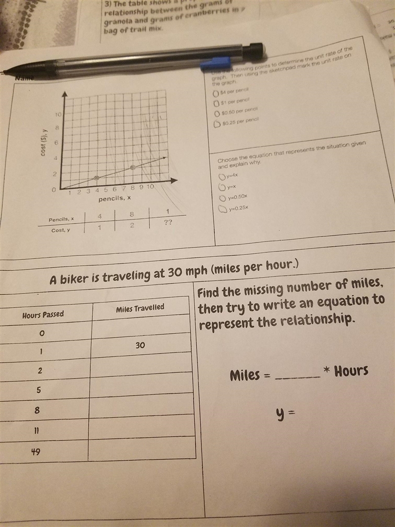 for example, multiply 5 (the hours passed) by 30. Your answer would be 150, which is the miles the biker would travel in 5 hours.