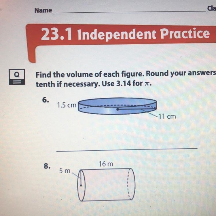 Find the volume of each figure. Round your answers to the nearest tenth if necessary. Use 3.14 for Pi. 6 and eight please