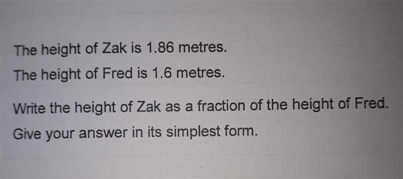 Write the height of zak as a fraction of the height of fred