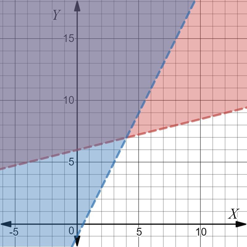 ∵ y > 1/4 x + 6 ⇒ y = 1/4 x + 6