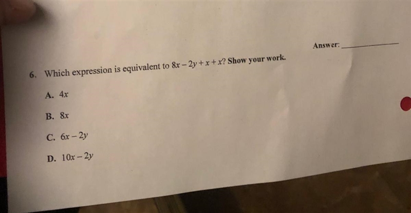 an x without anything in front of it is 1x you can only mix like terms so 8x+1x+1x=10x - 2y