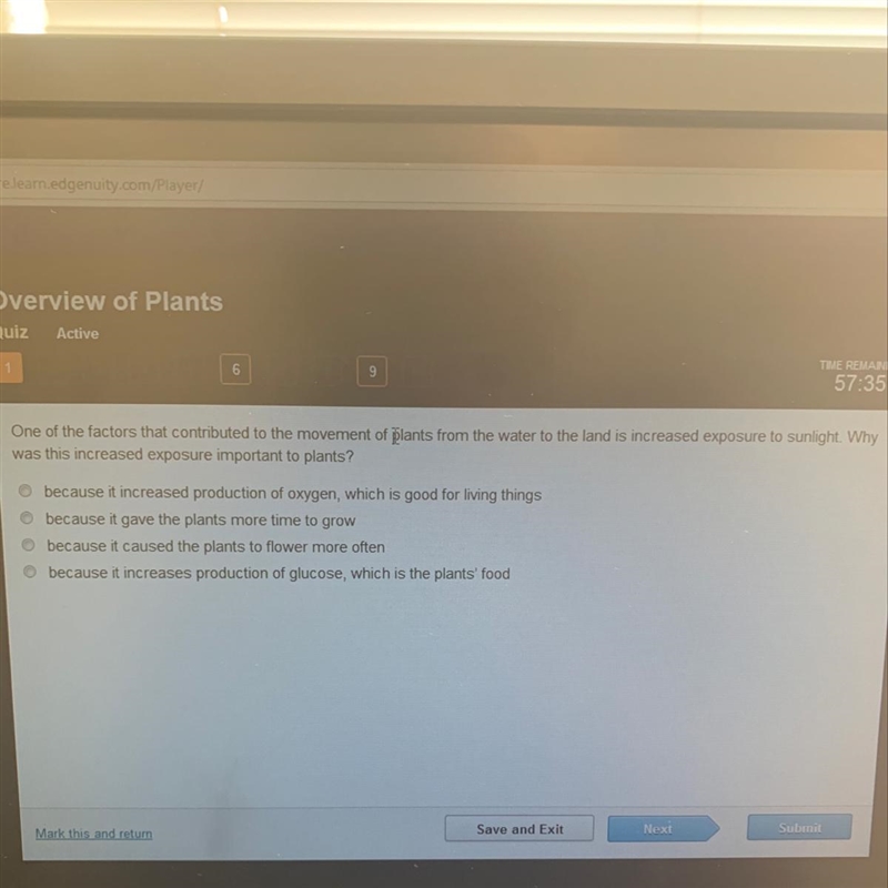 The main reason why the plants started to move from the water towards the land was that on the land they were able to produce more glucose, and the glucose is the food that the plants produce for themselves.