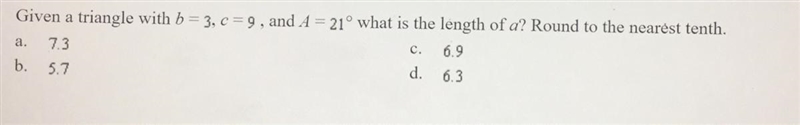The cosine rule is given by;
