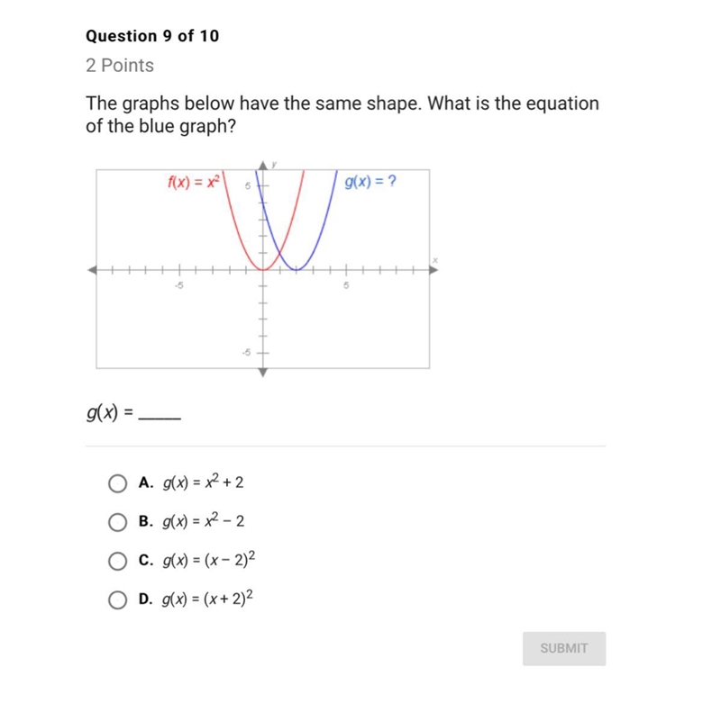 We can infer from the picture that the blue graph is shifted 2 units to the right of the red graph, so we should apply the second rule: