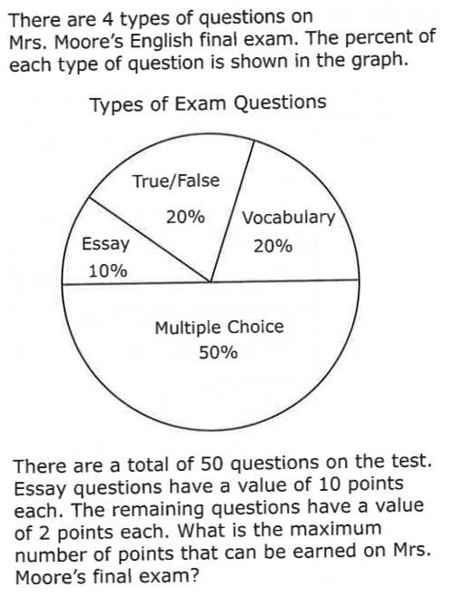 Essay question represent the 10% on Mrs. Moore's English final exam
