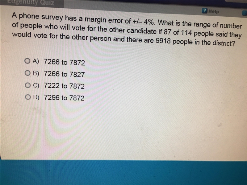 of them to have the sample proportion fall in this interval. Then for the population of 9918 people in the district, this corresponds to a range of