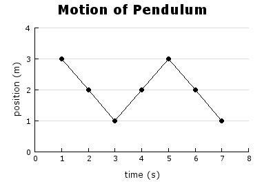 The pendulum is swinging back to center at position 2 m and time 8 sec.