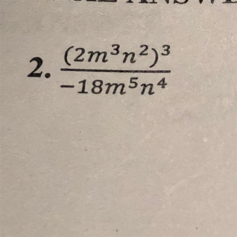(2m³n²)³/(-18m⁵n⁴) = -2m⁹n⁶/18m⁵n⁴ (Using identity 1)