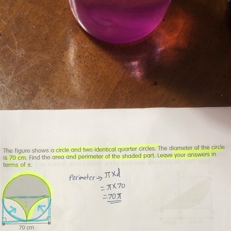 The perimeter of the given figure is equal to the circumference of whole circle.