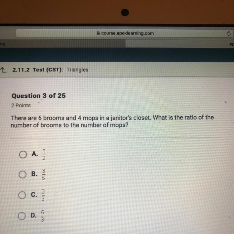 there are 6 brooms and 4 mops in a janitors closet what is the ratio of the number of brooms to the number of mops?