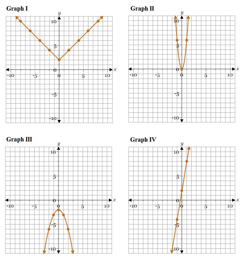 Which graph represents the equation y= -x^2 -2 A. I B. II C. III D. IV Please give a detailed reason and answer for each graph please
