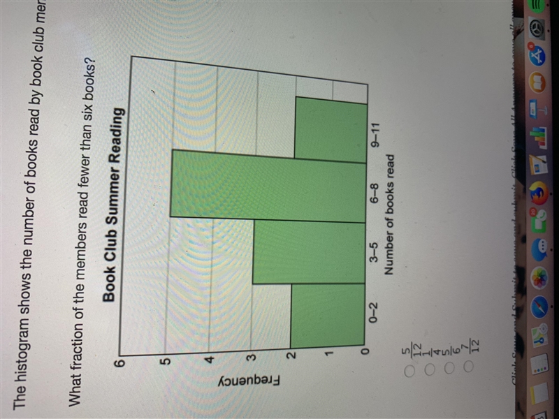 Since the question asks what fraction of the members read fewer than six books, we know the range would have to be between 0-6.