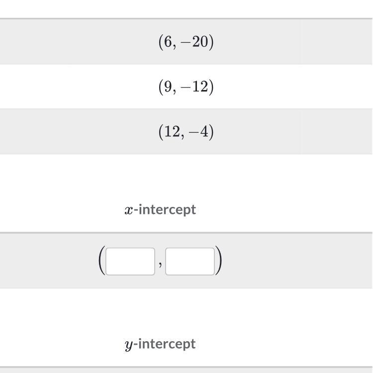 Determine the intercepts of the line that passes through the following points